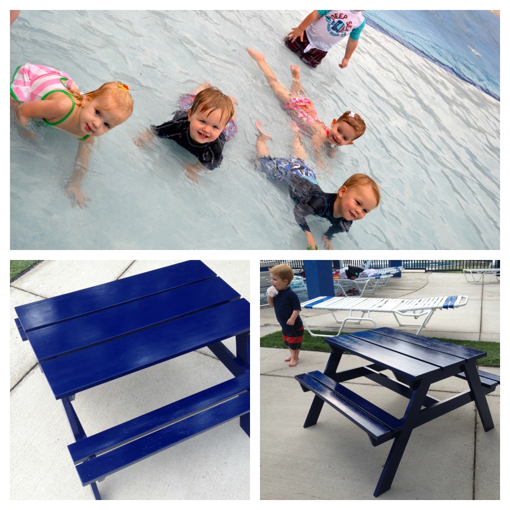 And his best bud Hutcheson celebrated his second birthday with a pool party! Mason helped Daddy build him this cute picnic table.